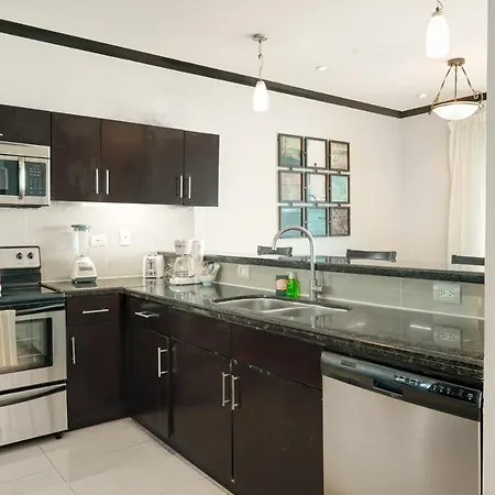 La cocina completa, equipada сon servicio de tetera/cafetera y nevera, un horno y cristalería, es perfecta para preparar comidas. La parada de autobús A Quepos está a unos 10 minutos andando del Diamante del Sol 802S Apartamento.
